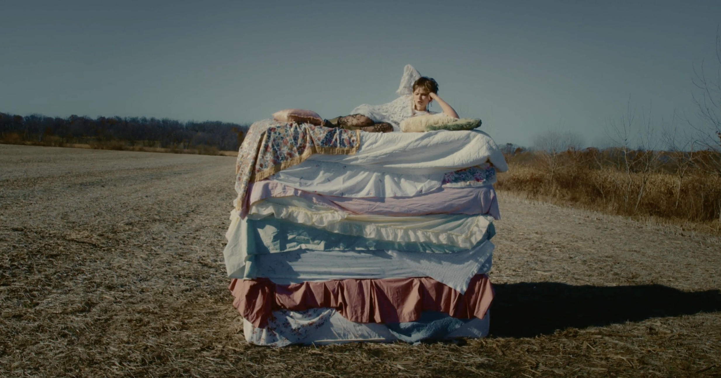 Fiona rides the CTA alone, lost in a haze. Across from her sits an unknown girl, onto whom Fiona projects fleeting romantic desire, imagining a vivid world of shared intimacy. Fleeing the bleakness of her reality and driven by an urgent search for a place to call home, Fiona descends deeper into fantasy, seeking refuge atop towers of mattresses in barren cornfields and disorienting, vividly colored waters. Eventually, the dream dissolves: the girl exits the train, leaving Fiona alone, suspended between longing and isolation.