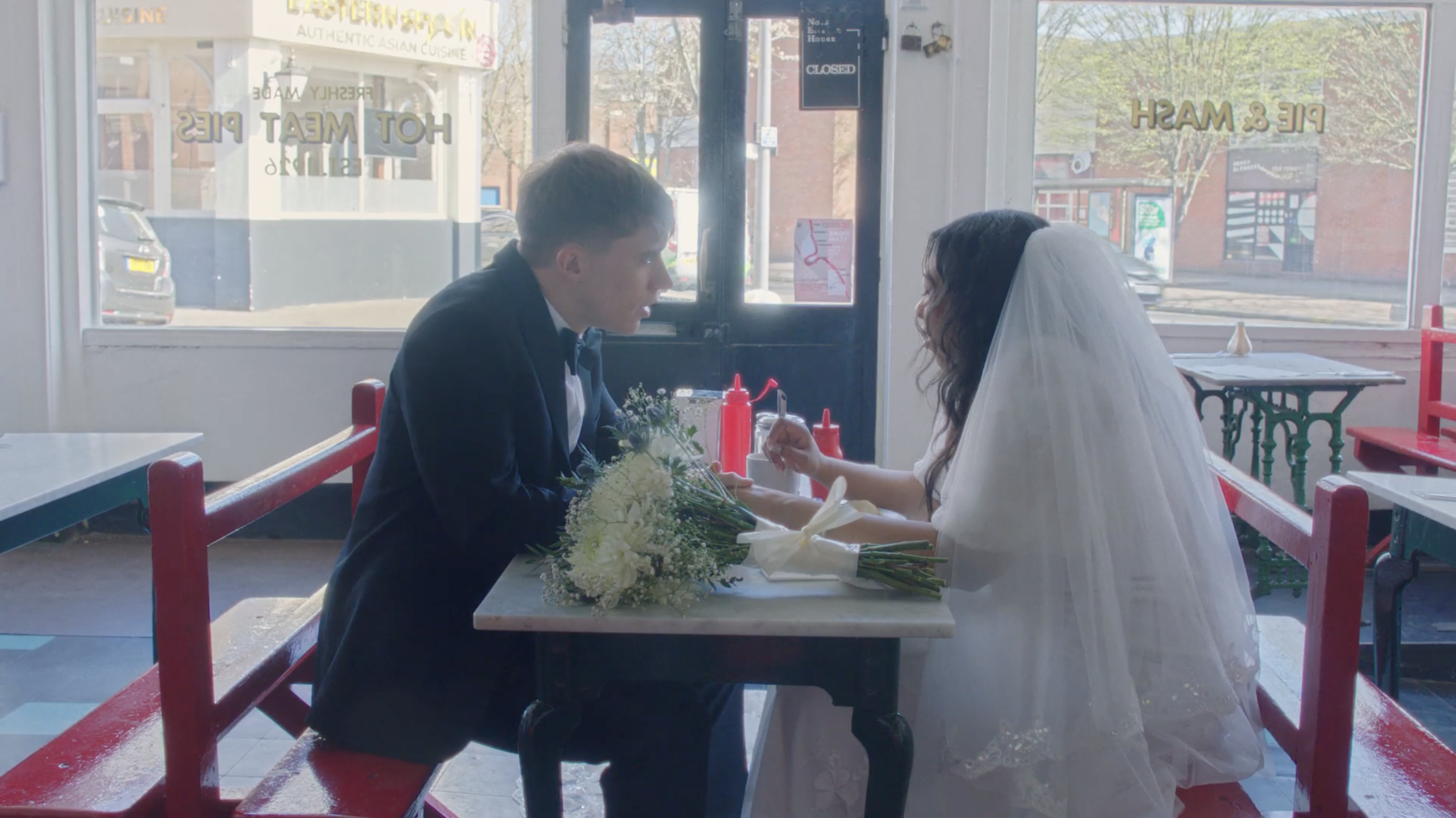 After jilting her husband-to-be at the altar, a runaway bride seeks refuge in a greasy spoon, where the groom tracks her down, determined to change her mind. As she explains her marriage anxieties to her betrothed over a fry-up, the debate unveils a much deeper gender crisis.