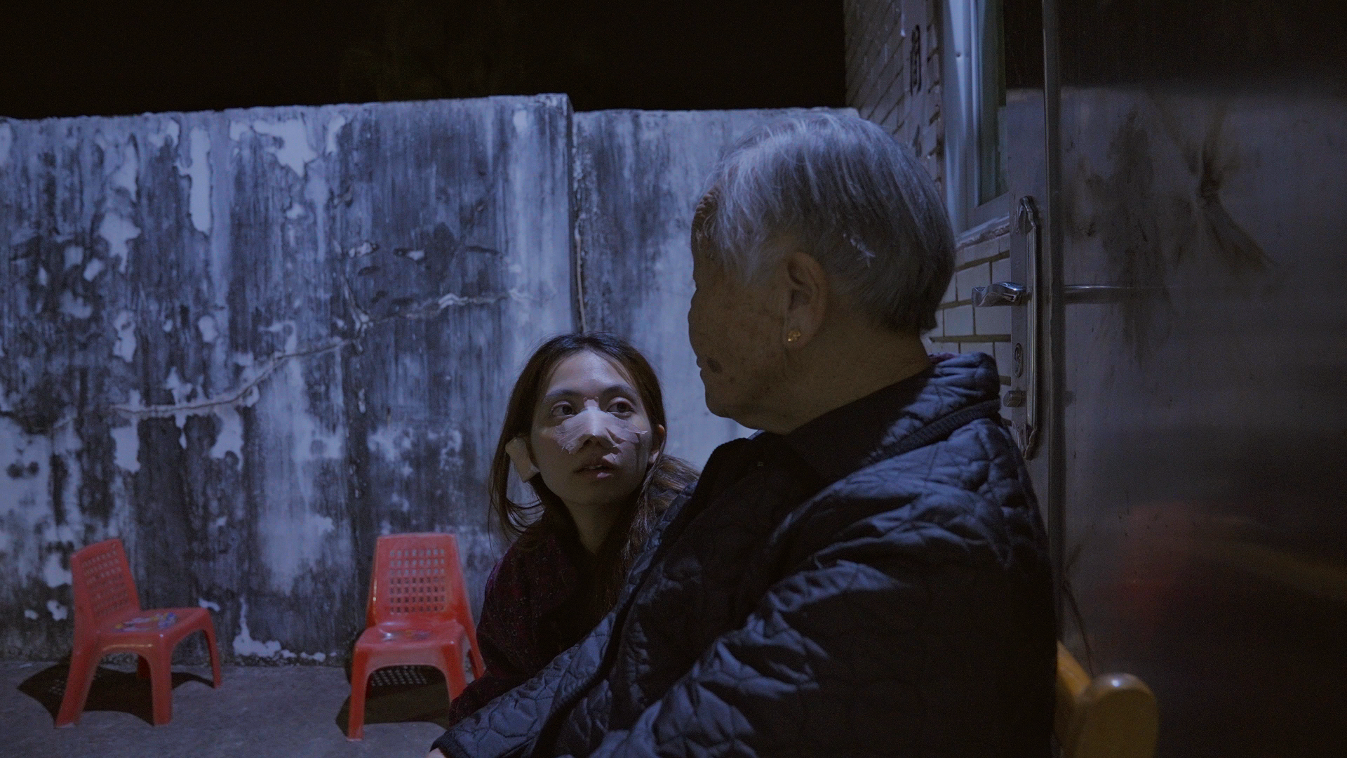 From the ear where a piece of cartilage had been taken for a rhinoplasty, the girl seemed to uncover a thread linking her to her departed grandmother. Little by little, the everyday routines of mutual care, carried out through day and night, became slowly imbued with memories etched by wounds.